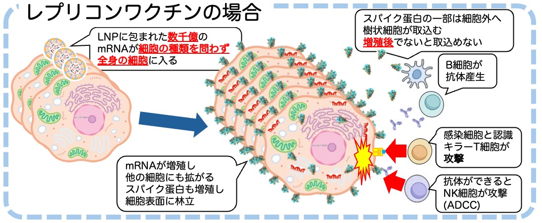 レプリコンは生ワクチンと違い無差別に細胞に入込み増殖するので危険