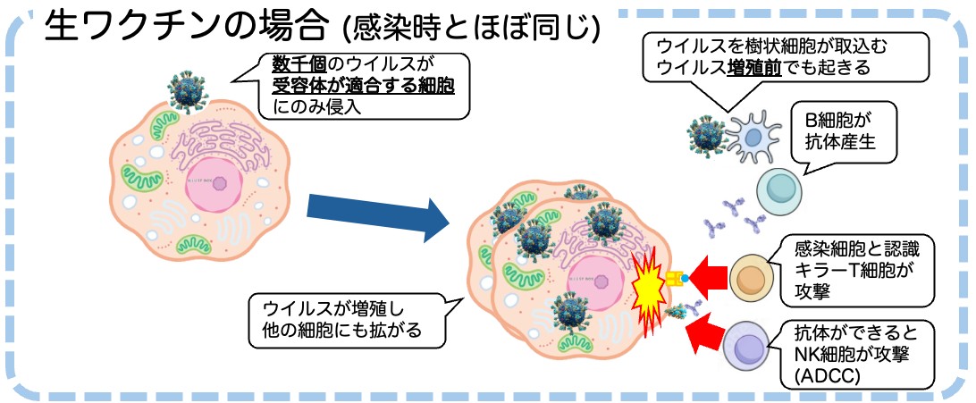 生ワクチンやウイルス感染では感染する細胞は限定的