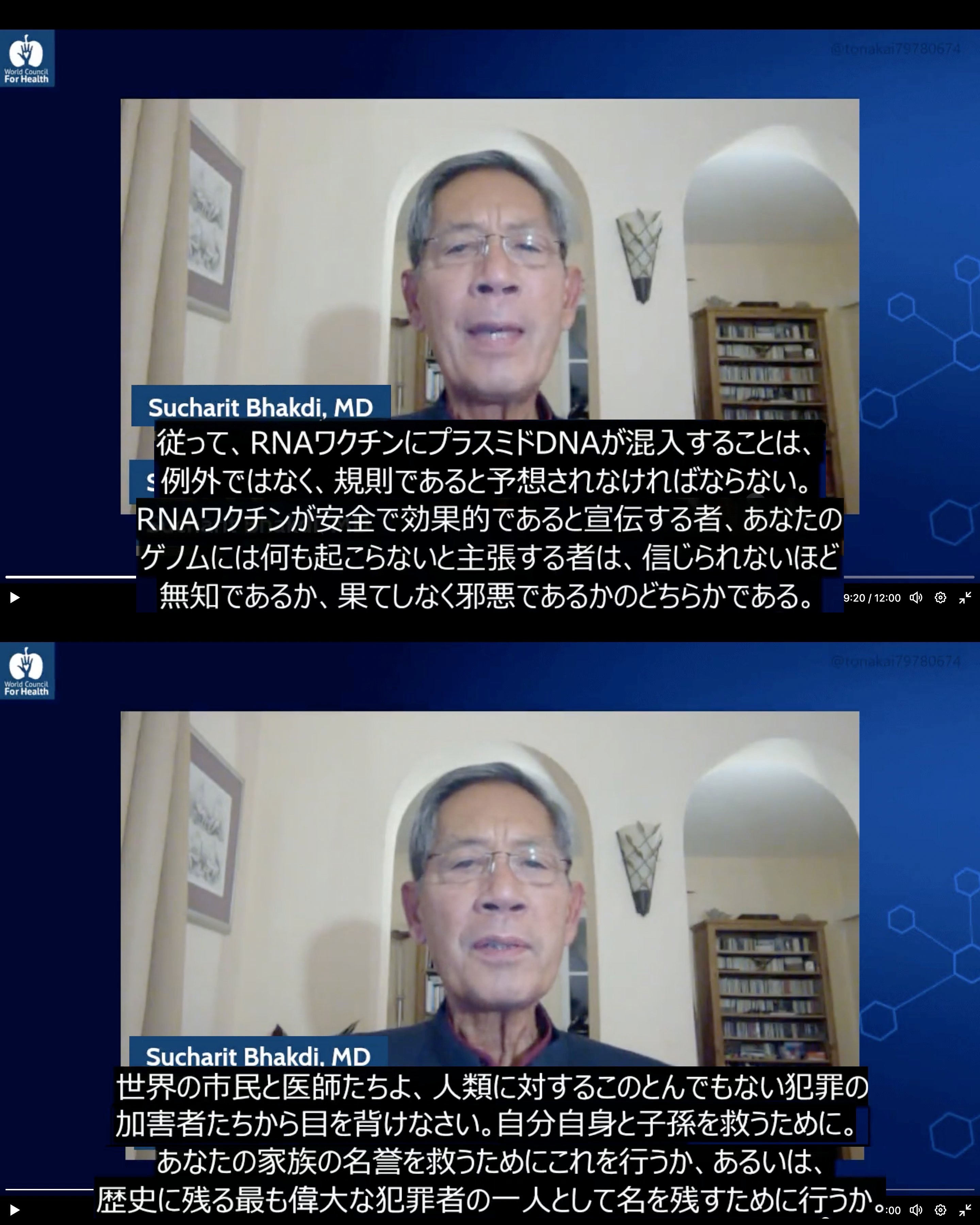 ドイツ在住のタイ人免疫学者であるBhakdi氏もWCH DNA汚染問題緊急専門者会議にも参加し分り易い言葉でDNA汚染の危険性を伝えている。筆者がBhakdi氏を知ったのは2021年4月ごろであり2021年mRNAワクチン開始当初より危険性を訴えてきた。